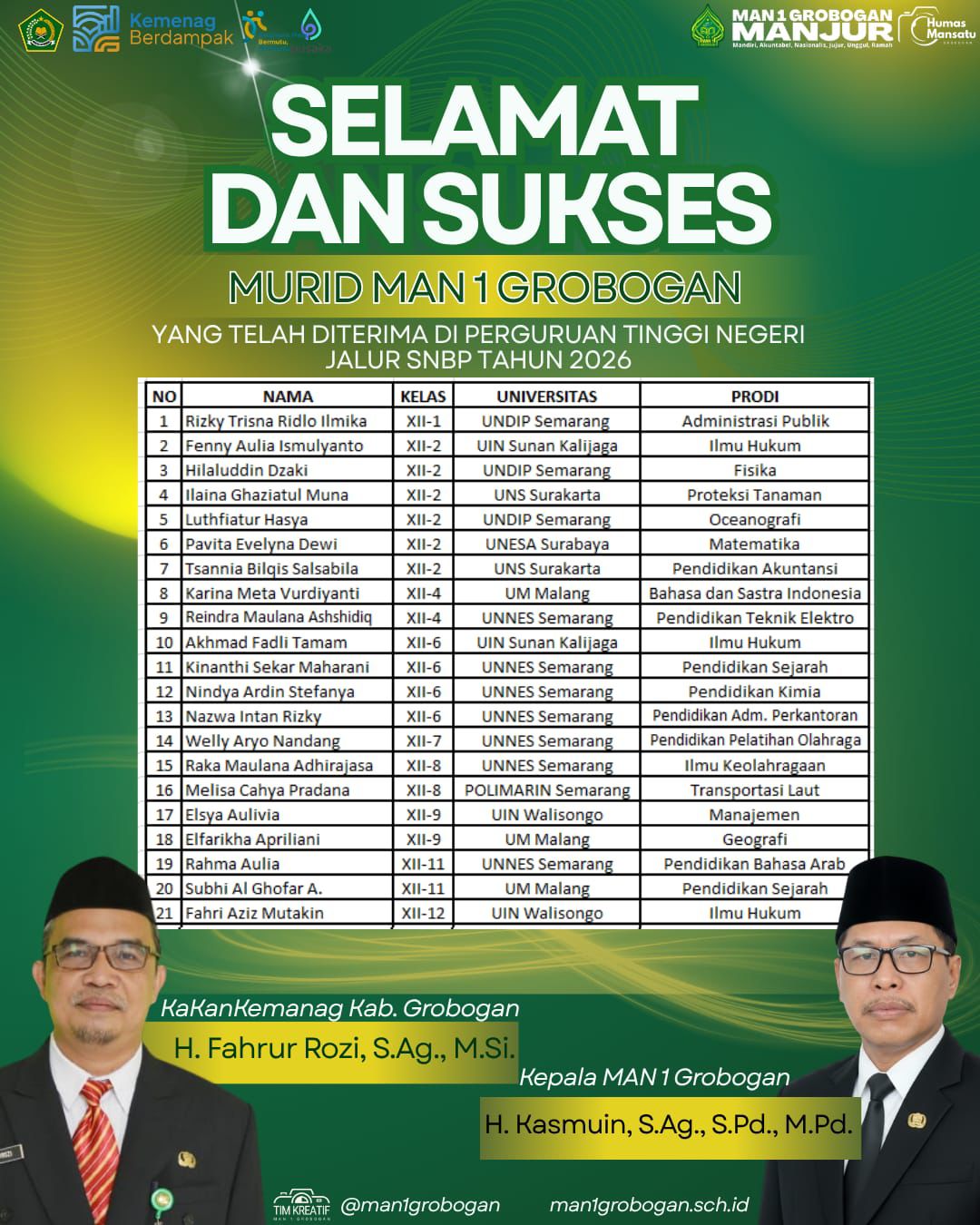 Purwodadi — Madrasah Aliyah Negeri (MAN) 1 Grobogan kembali menorehkan prestasi membanggakan dalam ajang Lomba Ketangkasan Baris Berbaris (LKBB) Patroli…