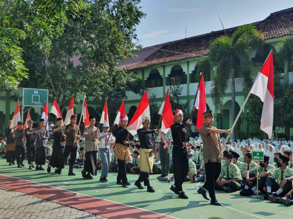 Sebanyak 20 siswa dan siswi memperagakan rasa hormat dengan jasa para pahlawan. Dan bendera merah putih menjadi simbol kekuatan untuk terus menjaga merah putih selama-lamanya. Selamat Hari Pahlawan Pahlawan 2022, Pahlawanku Teladanku. (Alfiyyah Laila Zahrah, Jurnalistik Mandiri.)