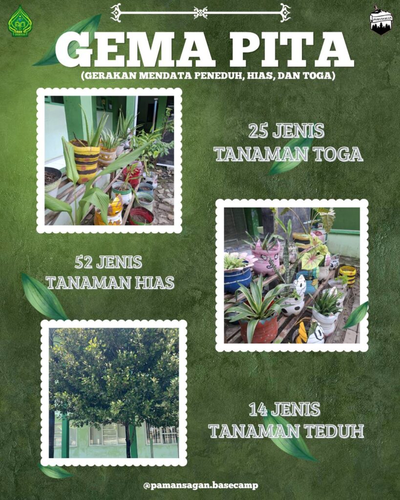 Selain itu, terdapat pula program GEMA PITA (Gerakan Mendata, Peneduh, Hias, dan Toga) yang berfokus pada pendataan tanaman, penanaman pohon peneduh, penghijauan area madrasah, serta pemanfaatan tanaman obat keluarga (TOGA). Kedua program ini dilaksanakan secara rutin setiap hari Selasa, menjadikannya sebagai agenda berkelanjutan yang konsisten membangun karakter peduli lingkungan.