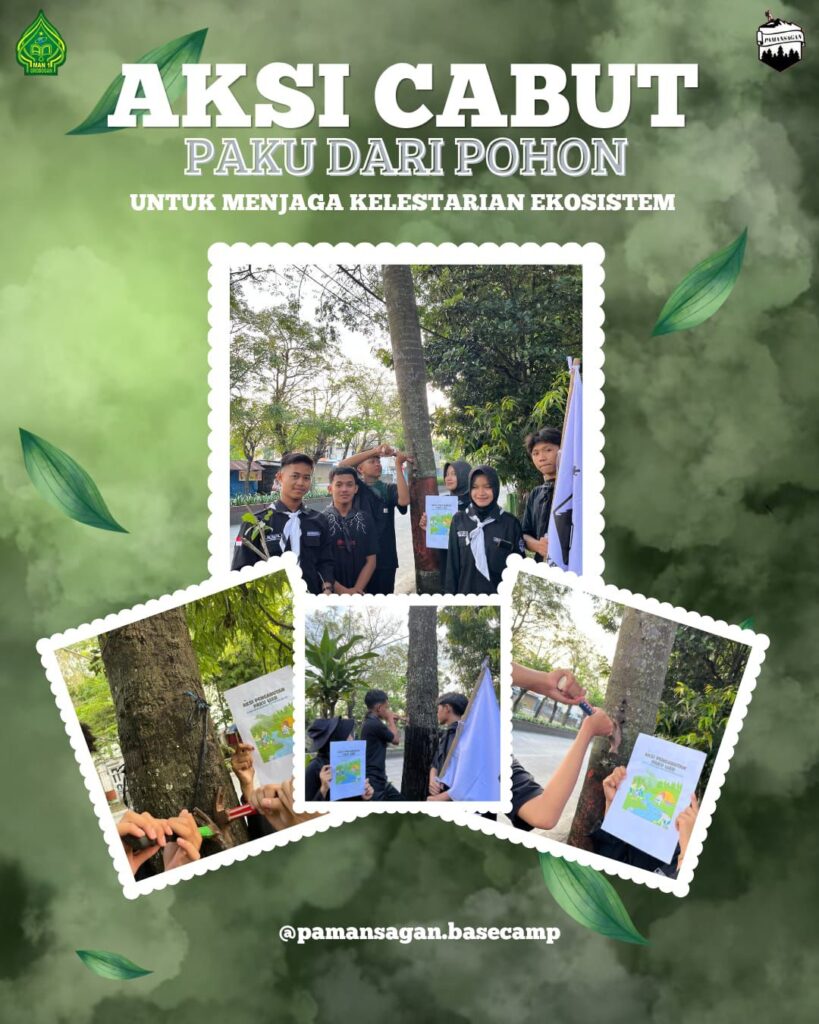 Menariknya, PAMANSAGAN tidak hanya aktif di dalam lingkungan madrasah, tetapi juga melakukan berbagai aksi nyata di luar. Selain kegiatan berpetualang sebagai sarana mengenal alam lebih dekat, para anggota juga menggelar aksi peduli lingkungan berupa cabut paku dari pohon di area publik. Kegiatan ini dilakukan sebagai bentuk kepedulian terhadap kesehatan pohon, mengingat paku yang menancap dapat menghambat pertumbuhan dan merusak jaringan batang pohon.
