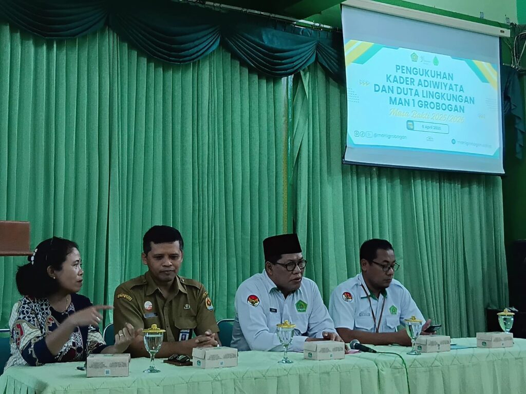 Kegiatan ini berlangsung khidmat dan dihadiri oleh berbagai pihak yang memiliki perhatian terhadap isu lingkungan, di antaranya S. Gunawan Widiyanto selaku Kepala Bidang Penataan dan Peningkatan Kapasitas, serta Kusnaningsih, Ketua Bank Sampah Sumber Berkah Lingkungan Kwarungan RT 01 RW 04 Kalongan. Turut hadir pula Kepala Madrasah MAN 1 Grobogan, Kasmuin, Kepala Tata Usaha Joko Riswanto yang juga menjabat sebagai Ketua Tim Adiwiyata, jajaran koordinator tim Adiwiyata, serta para siswa yang dikukuhkan sebagai kader Adiwiyata dan duta lingkungan hidup.