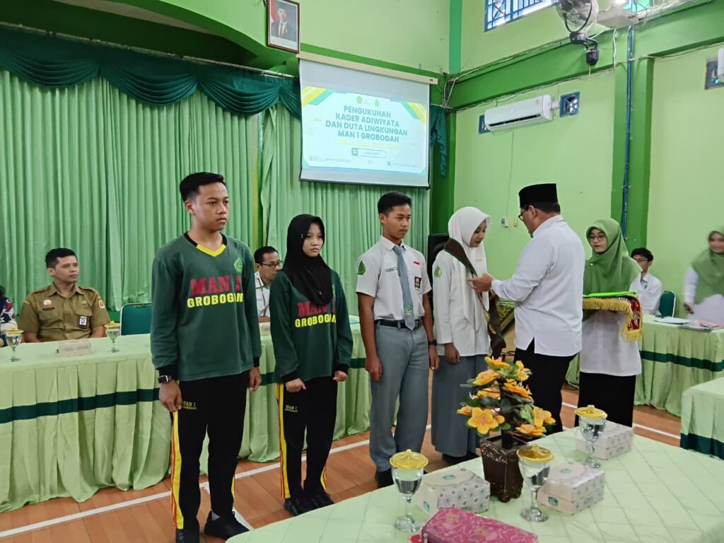 Mansagan News – Komitmen dalam membangun budaya peduli lingkungan kembali diteguhkan oleh MAN 1 Grobogan melalui kegiatan Pengukuhan Kader Adiwiyata dan Duta Lingkungan Hidup Masa Bakti 2025/2026 yang dilaksanakan pada Senin, 6 April 2026 pukul 09.00 WIB di Aula madrasah.