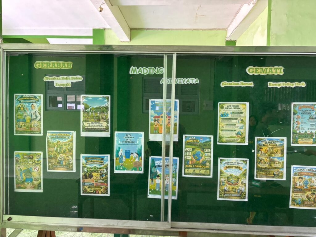 Mansagan News– Suasana berbeda terlihat di lingkungan MAN 1 Grobogan pada hari ini, Sabtu, 4 April 2026. Para murid bersama Tim Adiwiyata melaksanakan kampanye peduli lingkungan dengan cara sederhana namun sarat makna. Melalui pembuatan dan pemasangan poster-poster edukatif, para murid menyuarakan pesan tentang pentingnya menjaga lingkungan yang asri, sehat, dan meneduhkan.
