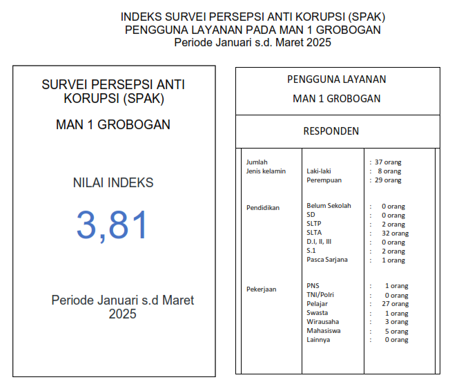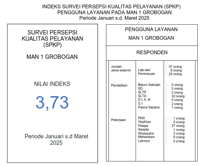 HASIL SURVEI SPAK & SPKP MAN 1 GROBOGAN TRIWULAN I 2025