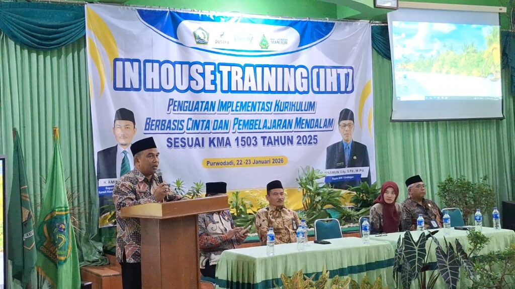 Purwodadi– Dalam upaya merespons dinamika kebijakan pendidikan terbaru, MAN 1 Grobogan menyelenggarakan In House Training (IHT) bertajuk “Pembelajaran Mendalam (Deep Learning) dan Kurikulum Berbasis Cinta (KBC)”. Kegiatan yang berlangsung selama dua hari, Kamis–Jumat (21–22 Januari 2026), ini diikuti oleh seluruh jajaran guru dan kepala madrasah dengan penuh antusiasme.